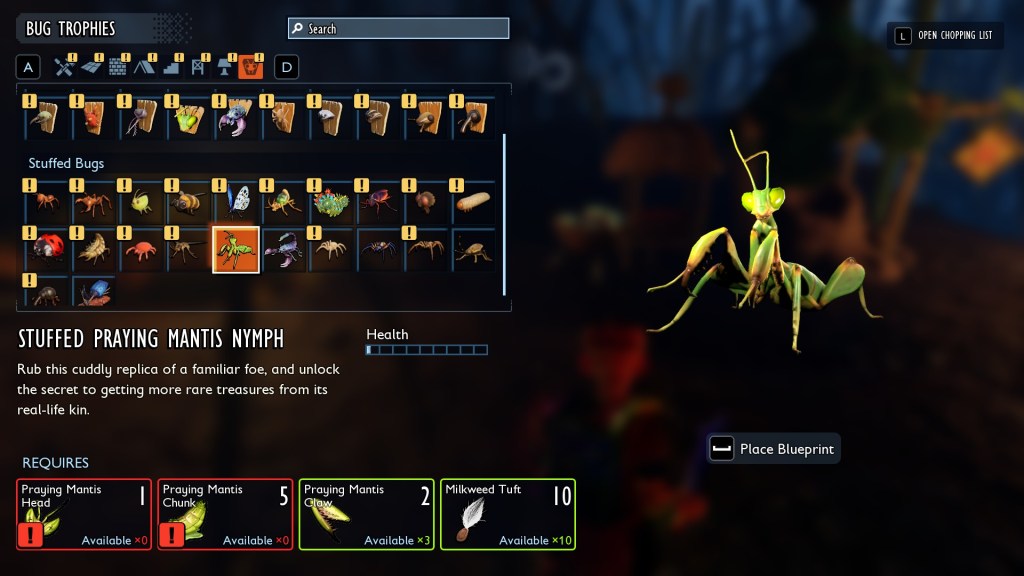 - New Content: Pine building set, Scorpion Bed/Lamp, Wolf Spider Rug, Praying Mantis Armor.
